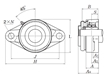 | 雙螺栓菱形法蘭式軸承座,帶緊定螺釘,壓制鋼防塵蓋,封閉端蓋,UCFL型 - 尺寸 | |