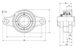 | 雙螺栓菱形法蘭式軸承座,球墨鑄鐵外殼,帶緊定螺釘,UCFE型 - 尺寸 | |