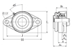 | 雙螺栓菱形法蘭式軸承座,鑄造外殼,帶緊定套,壓制鋼防塵蓋,封閉端蓋,UKFL型 - 尺寸 | |