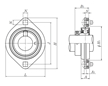 | 雙螺栓菱形法蘭式軸承座,壓制鋼外殼,帶偏心鎖環(huán),JELPFL型 - 尺寸 | |