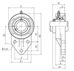 | 三螺栓法蘭式單元,鑄造外殼,帶緊定螺釘,UCFH型 - 尺寸 | |