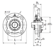 | 四螺栓圓形法蘭式軸承座安裝單元,鑄造外殼,帶緊定套,UKFC型 - 尺寸 | |