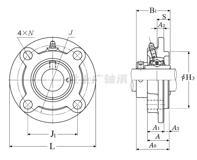 | 類(lèi)型 | 四螺栓圓形法蘭式軸承座 |