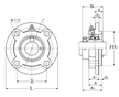 | 四螺栓圓形法蘭式軸承座安裝單元,鑄造外殼,帶偏心鎖環(huán),UELFC型 - 尺寸 | |