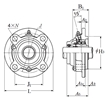 | 四螺栓圓形法蘭式軸承座安裝單元,鑄造外殼,帶緊定套,鑄造防塵蓋,開(kāi)式,UKFC型 - 尺寸 | |