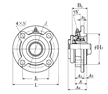 | 四螺栓圓形法蘭式軸承座安裝單元,鑄造外殼,帶緊定套,壓制鋼蓋,封閉端蓋,UKFC型 - 尺寸 | |