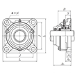 | 四螺栓方形法蘭式軸承座安裝單元,鑄造外殼,帶緊定螺釘,鑄造防塵蓋,開(kāi)式,UCF型 - 尺寸 | |