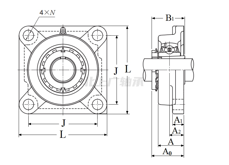 | 類(lèi)型 | 四螺栓方形法蘭式軸承座 |