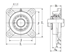 | 四螺栓方形法蘭式軸承座安裝單元,鑄造外殼,帶緊定套,UKF型 - 尺寸 | |
