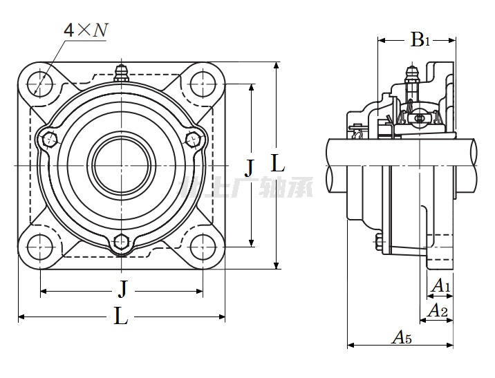 | 類(lèi)型 | 四螺栓方形法蘭式軸承座 |