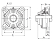 | 四螺栓方形法蘭式軸承座安裝單元,鑄造外殼,帶緊定套,鑄造防塵蓋,開(kāi)式,UKF型 - 尺寸 | |