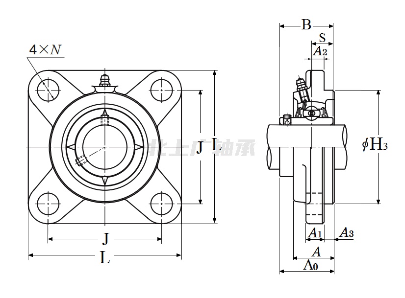 | 類(lèi)型 | 四螺栓方形法蘭式軸承座 |