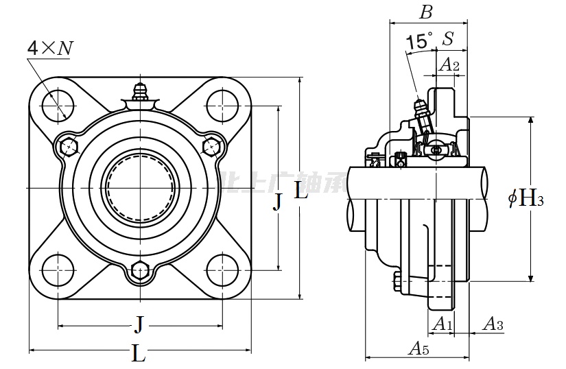 | 類(lèi)型 | 四螺栓方形法蘭式軸承座 |