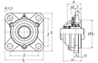 | 四螺栓方形法蘭式軸承座安裝單元,鑄造外殼,帶緊定螺釘,鑄造防塵蓋,開(kāi)式,UCFS型 - 尺寸 | |