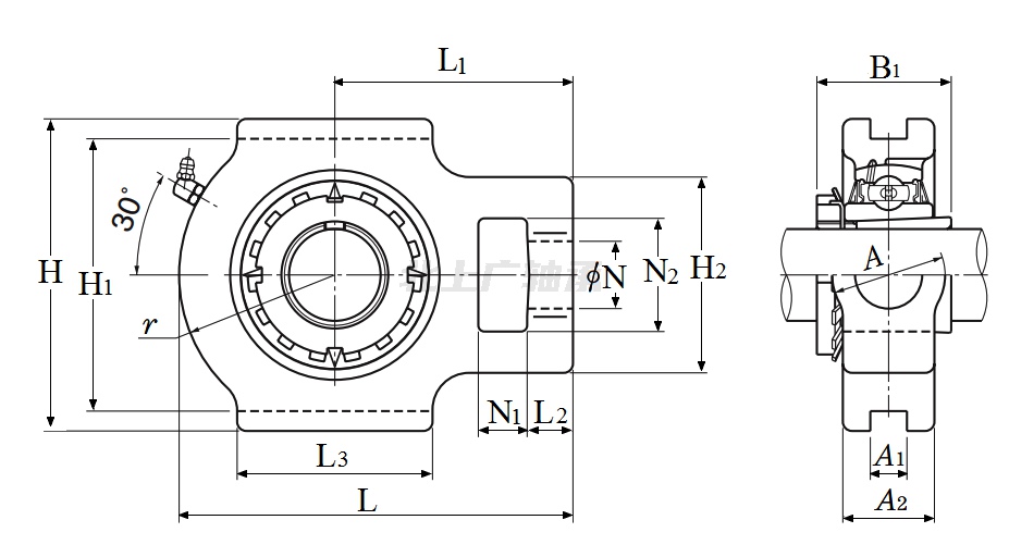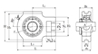 | 滑塊型軸承座,鑄造外殼,帶緊定套,UKT型 - 尺寸 | |