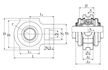 | 滑塊型軸承座,鑄造外殼,帶緊定螺釘,壓制鋼防塵蓋,開(kāi)式,UCT型 - 尺寸 | |