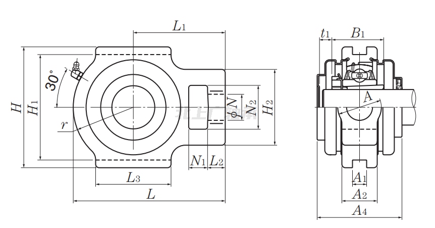 北上廣(廣州)有限公司是NTN軸承授權代理商,經(jīng)銷(xiāo)全品類(lèi)NTN軸承,NTN SM-UKT209D1 (when used with HE2309X)軸承屬于【NTN軸承 - 軸承座 - 滑塊型軸承座 - SM-UKT型】,基本描述為:Item # SM-UKT209D1(附件型號:HE2309X),滑塊型軸承座,鑄造外殼,帶緊定套,壓制鋼防塵蓋,封閉端蓋,UKT型。