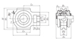 | 滑塊型軸承座,鑄造外殼,帶緊定套,壓制鋼蓋,封閉端蓋,UKT型 - 尺寸 | |