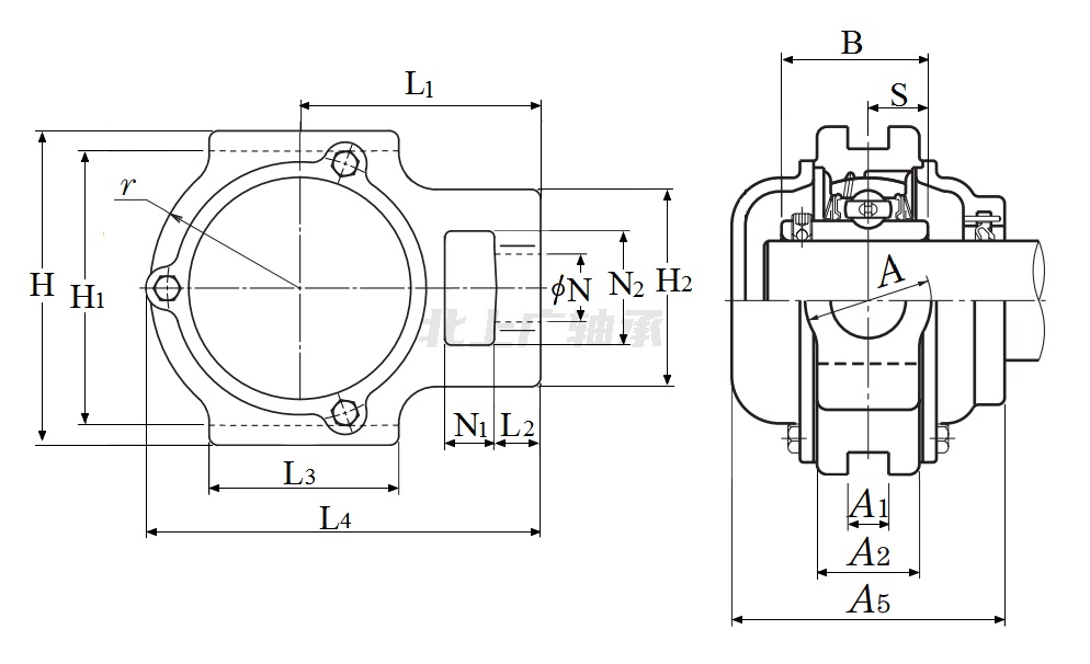 前綴列表:【CM-:軸承座單側帶鑄鐵材質(zhì)閉合擋蓋】【U:外球面球軸承】【C:內圈內孔為圓柱孔,帶止動(dòng)螺釘】【T:帶角鋼制框架的滑塊形軸承座】【X:中負荷用】,后綴列表:【D1:帶潤滑油孔】