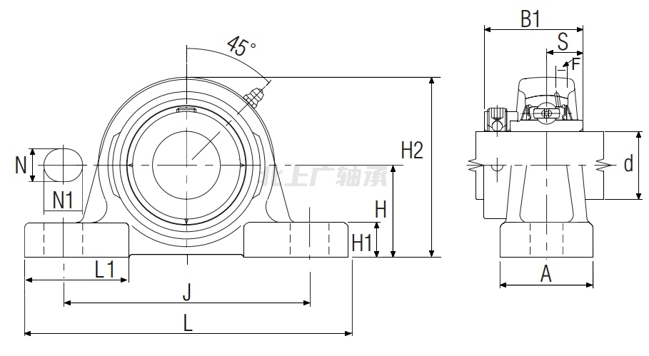 前綴列表:【U:外球面球軸承】【C:內圈內孔為圓柱孔,帶止動(dòng)螺釘】【FL:菱形法蘭式軸承座】【U:窄型】【X:中負荷用】【-:分隔符】
