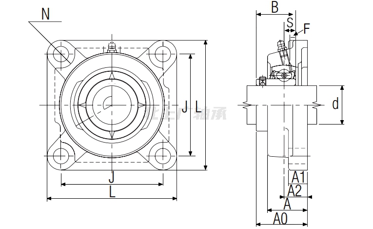| 類(lèi)型 | 四螺栓方形法蘭式軸承座 |