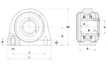 | 螺紋底座,枕式軸承座,不銹鋼外殼,帶緊定螺釘,SUCPA型 - 尺寸 | |