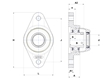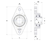 | 雙螺栓菱形法蘭式軸承座,熱塑性外殼,帶緊定螺釘,SUCNFL型 - 尺寸 | |