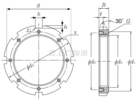 | 帶螺栓孔的鎖緊螺母 - 尺寸 | |